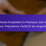 Il est important de vérifier que les chaises sont légères pour un déplacement facile et qu'elles sont faciles à nettoyer. Les prix varient généralement de 50 à 300 EUR par chaise, selon le design et la robustesse.